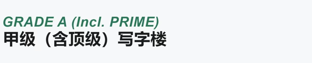 從樓宇等級成交面積來看,頂級、甲級寫字樓成交面積均有上升,其中頂級寫字樓成交面積相對穩定、甲級寫字樓成交面積環比上季度上升超過20萬平方米、乙級寫字樓成交面積降幅約1萬平方米。